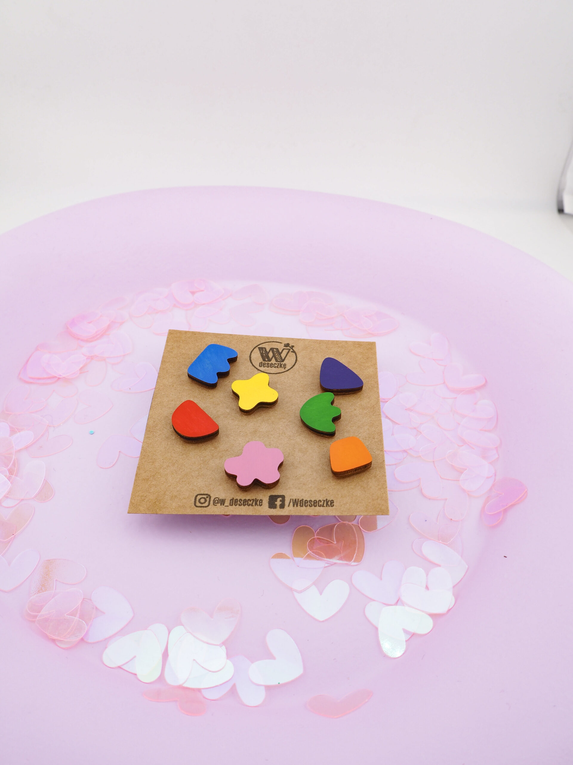 Niektóre kolczyki pasują do jednej stylizacji. Jednakże ten zestaw pasuje do wszystkich. Zestaw kolorowych mini kolczyków drewnianych od W Deseczkę to więcej niż biżuteria. Przede wszystkim to kolekcja możliwości zamknięta w siedmiu parach sztyfty.