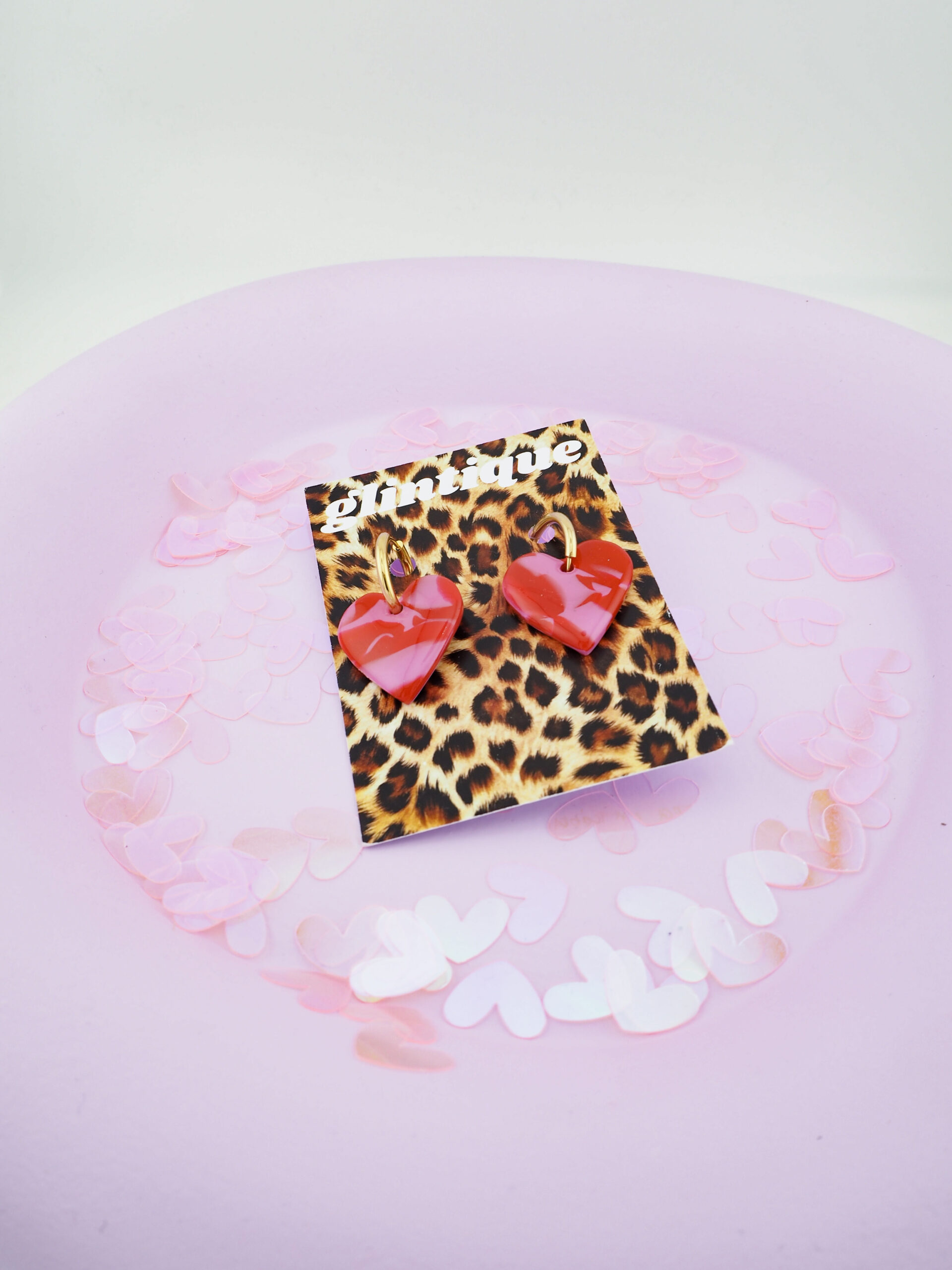 Jasnoróżowe serduszko z czerwonym marmurkowym wzorem zawieszone na złotym kółku. Romantyczne, delikatne, a jednocześnie przyciągające wzrok. Idealne dla osób, które cenią sobie klasyczną kobiecość z artystycznym twistem.
