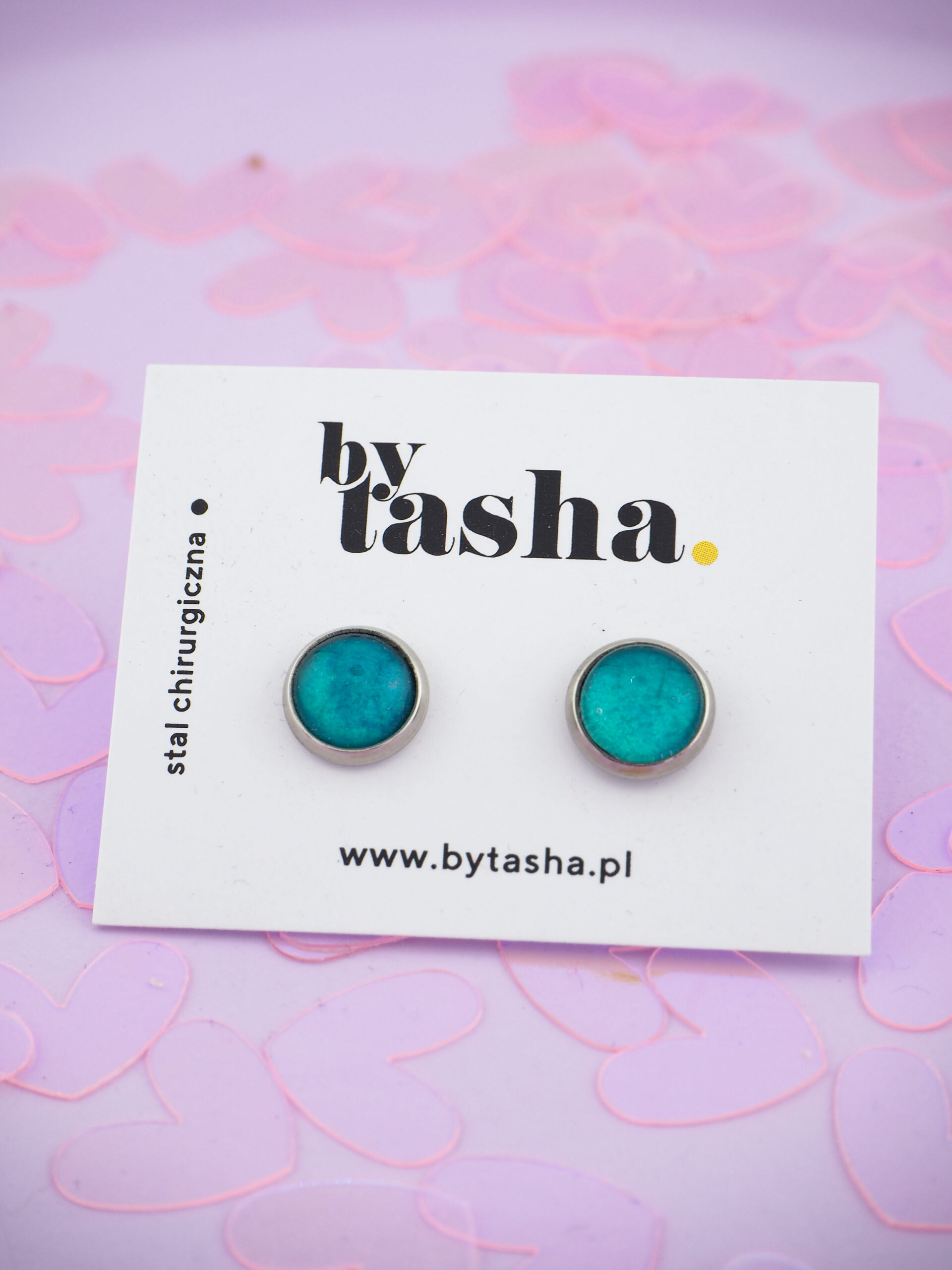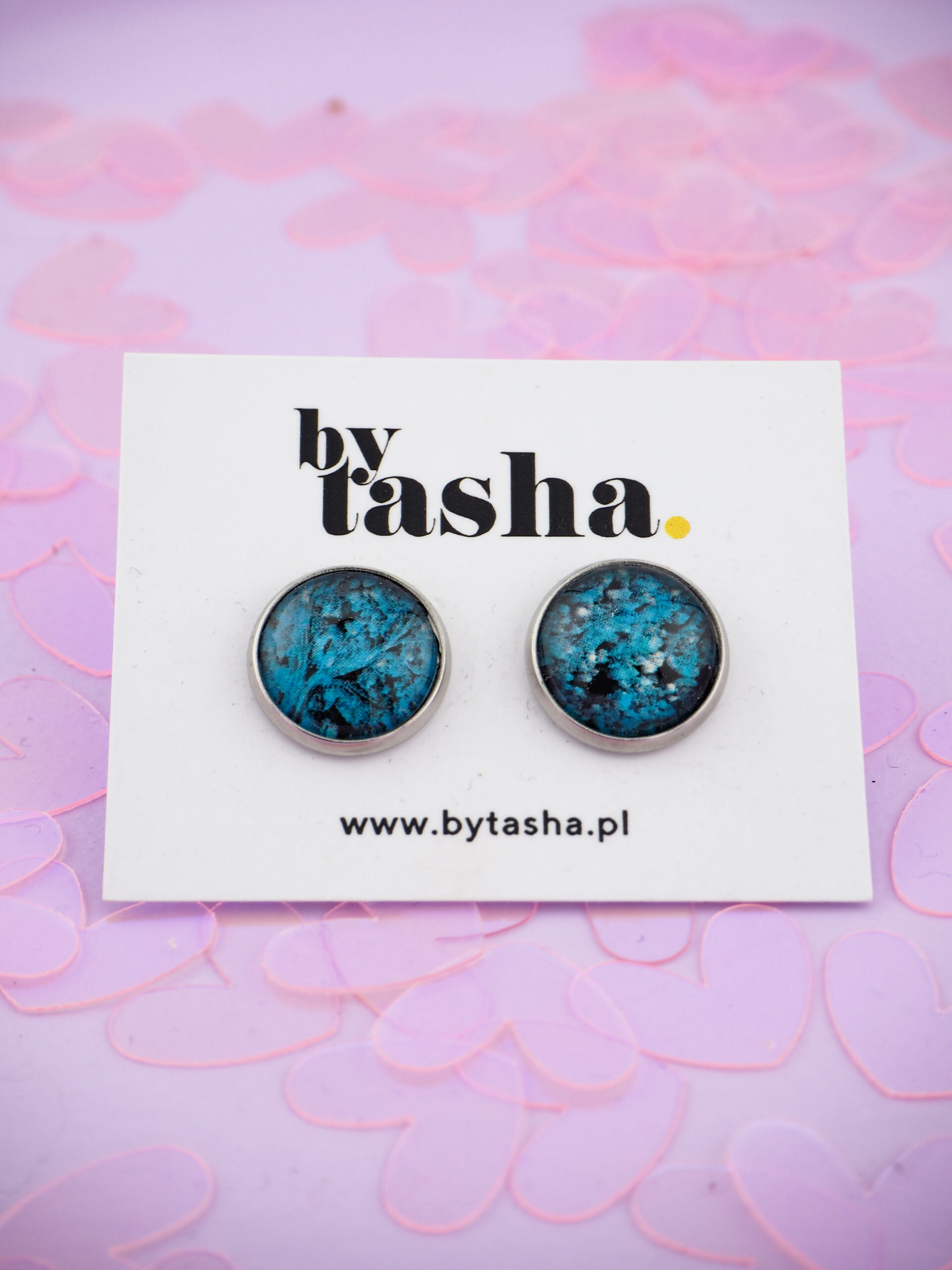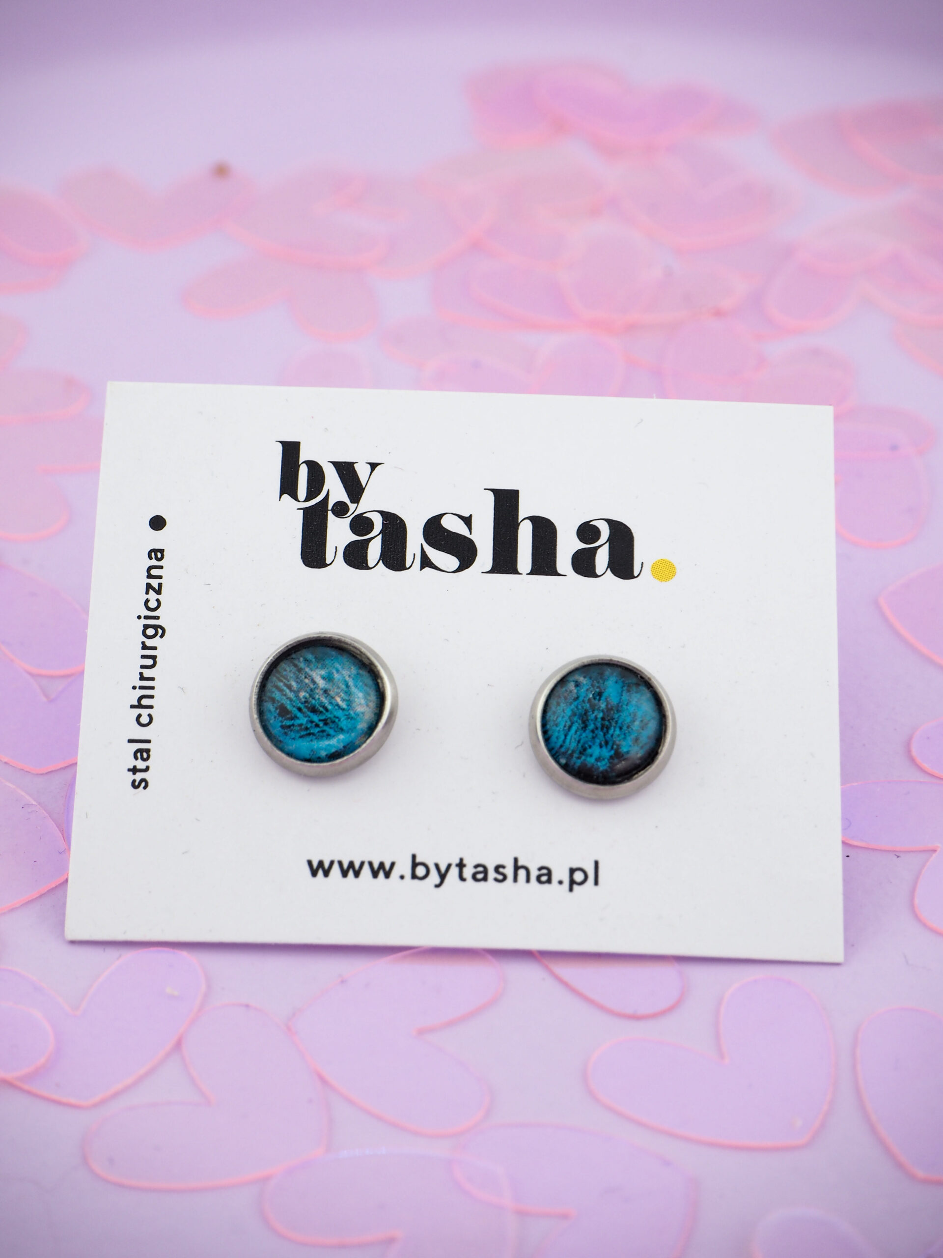 - Zapięcie: Sztyft z silikonową zatyczką. Trzymają się pewnie, bo zgubienie unikalnego kolczyka to dramat, na który nikt nie ma czasu.