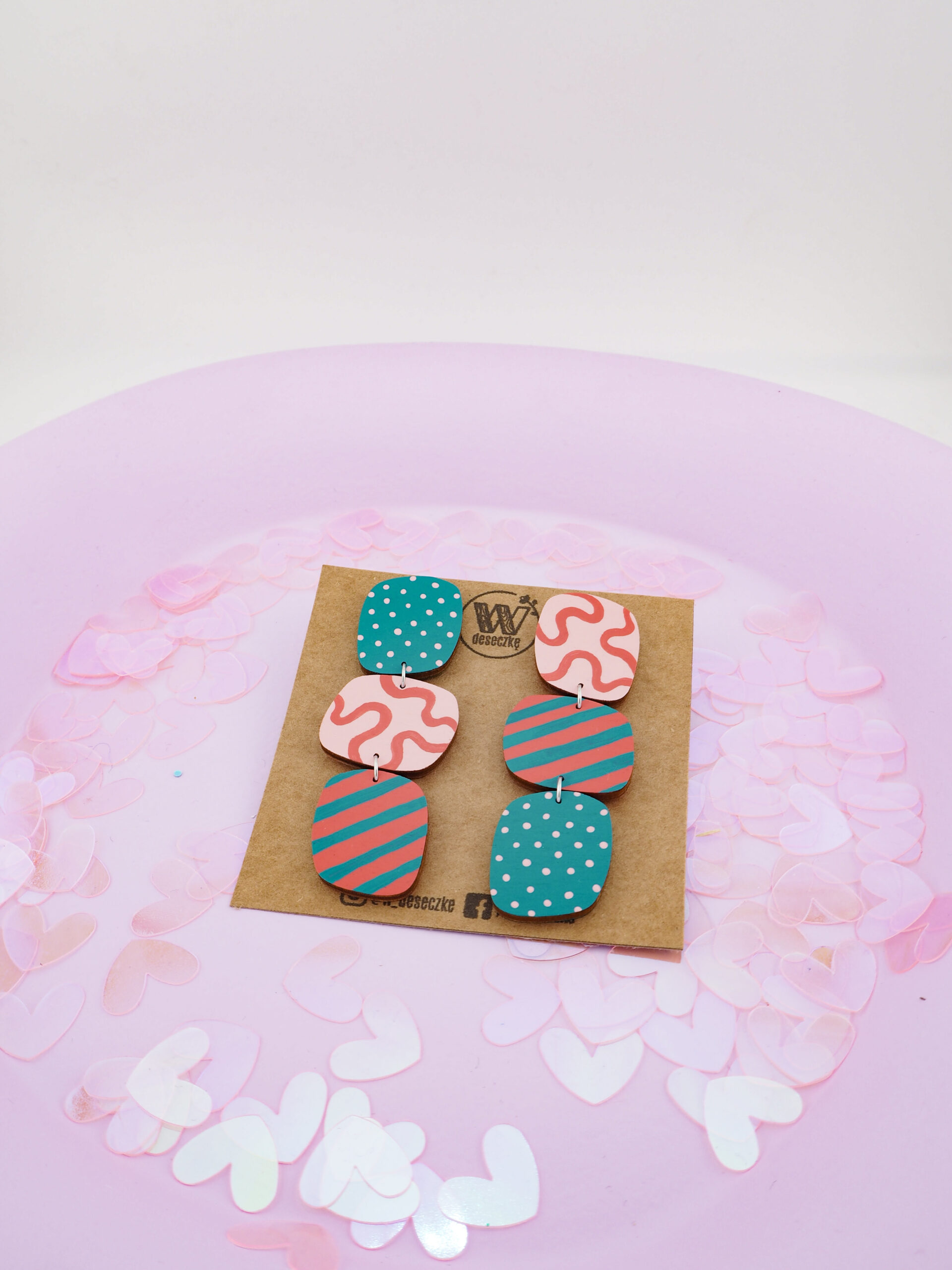 Kolczyki sztyfty trzyczęściowe drewniane, które zamieniają Twoje uszy w galerię sztuki współczesnej.