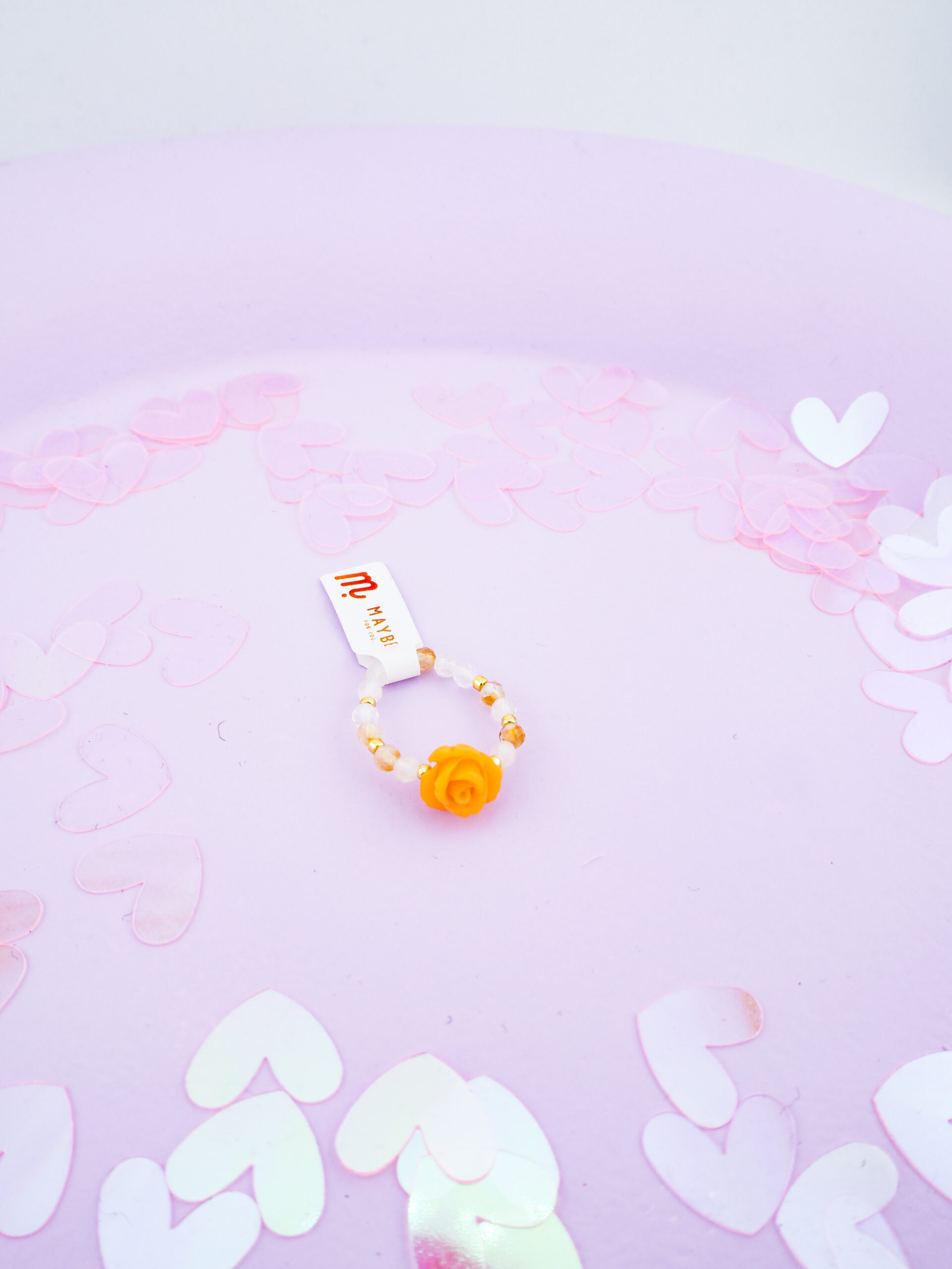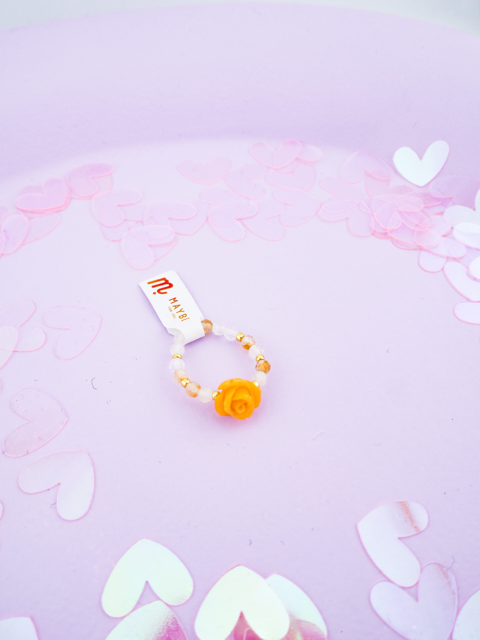- Akcenty: Złote koraliki, które podkreślają słoneczny charakter, więc pierścionek wygląda jak mały promień szczęścia.