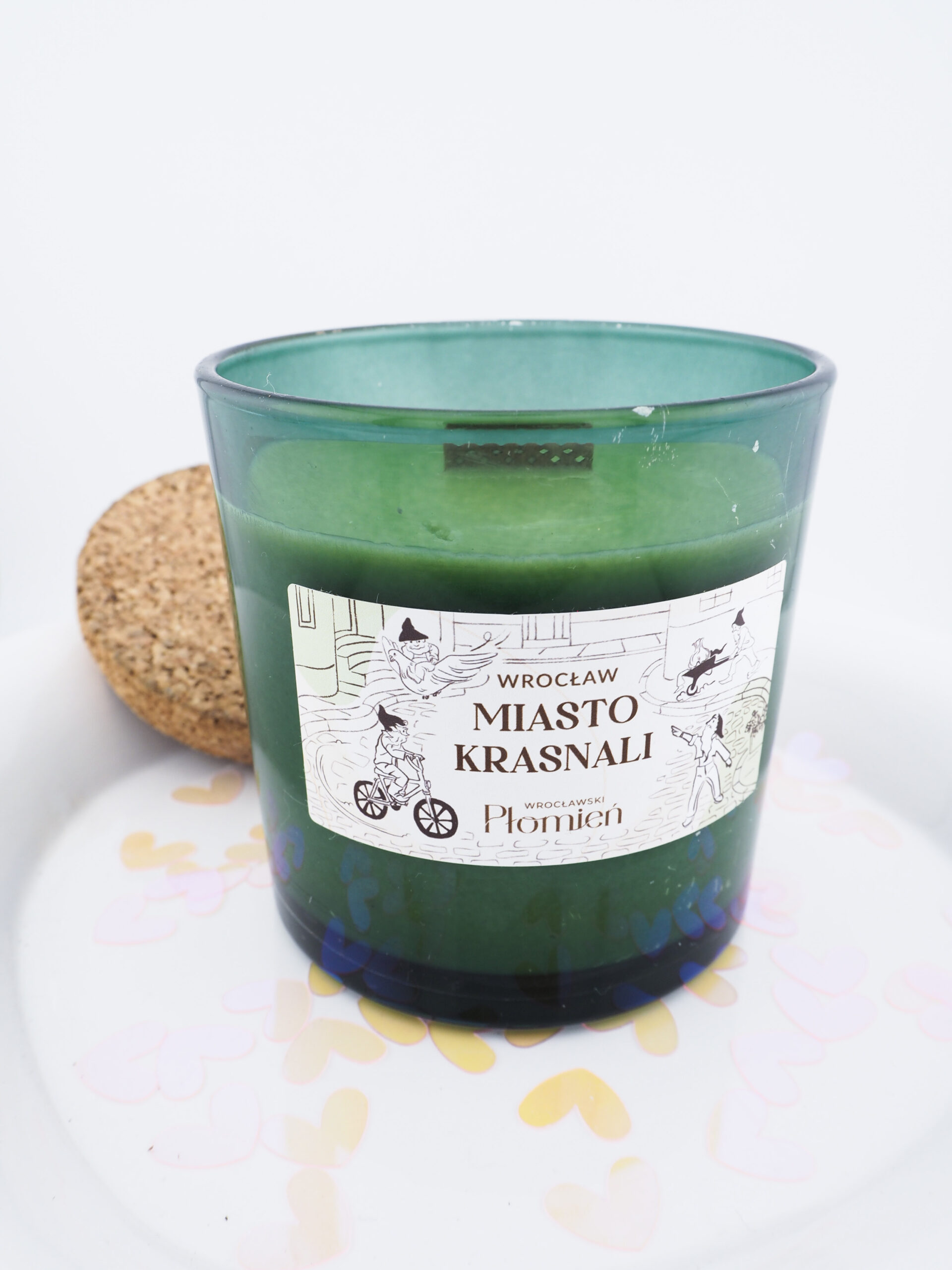 Świeca w zielonkawym wosku, inspirowana najbardziej uroczymi mieszkańcami miasta. Wrocławskie krasnale – małe, ale charakterne, jak ta świeca. Idealna dla osób, które wierzą, że magia istnieje, zwłaszcza po trzecim kieliszku wina. Zapach pełen niespodzianek i humoru, jak polowanie na krasnale po całym mieście. Z tym że nie musisz się schylać ani pytać przechodniów o drogę.