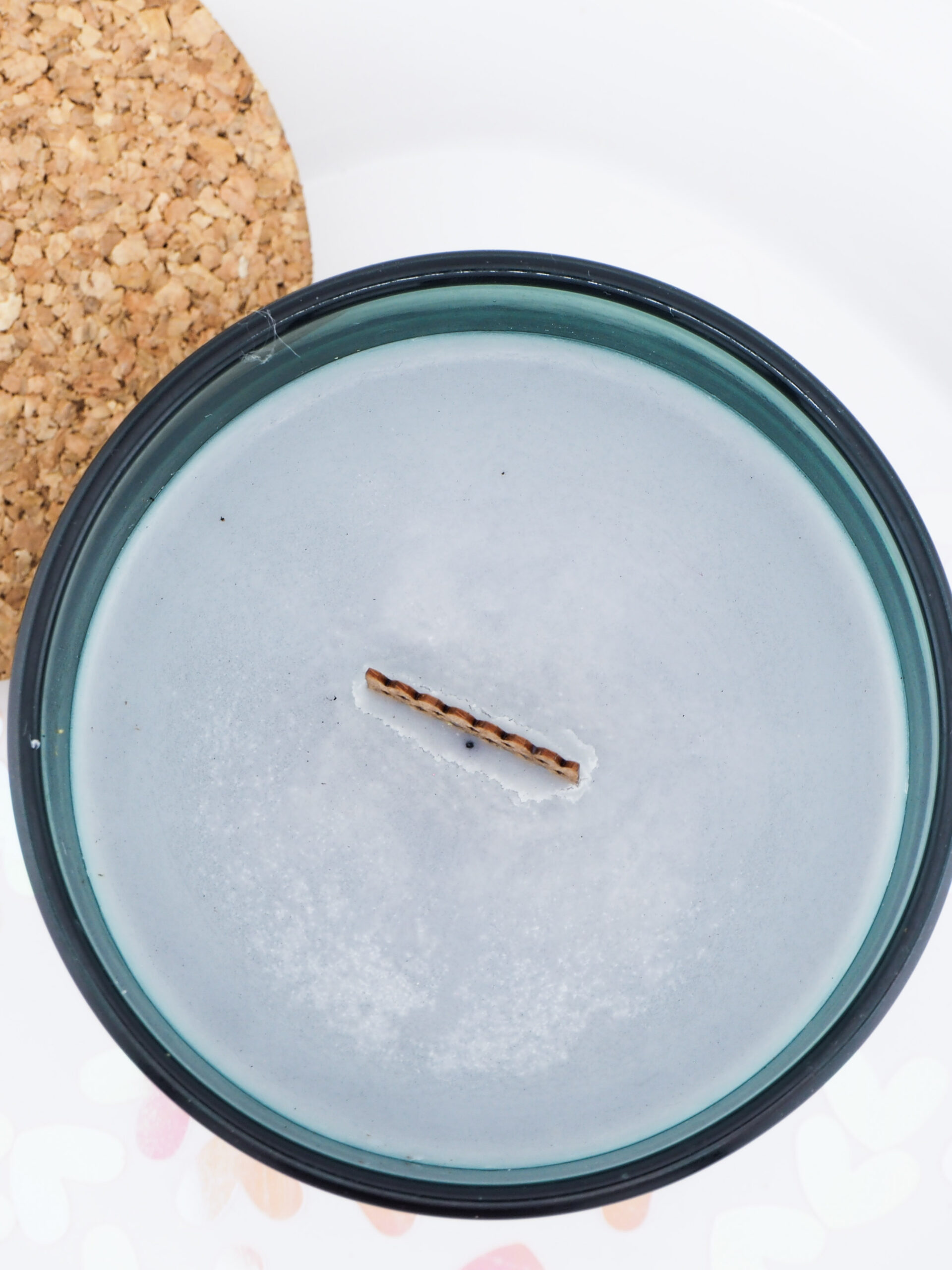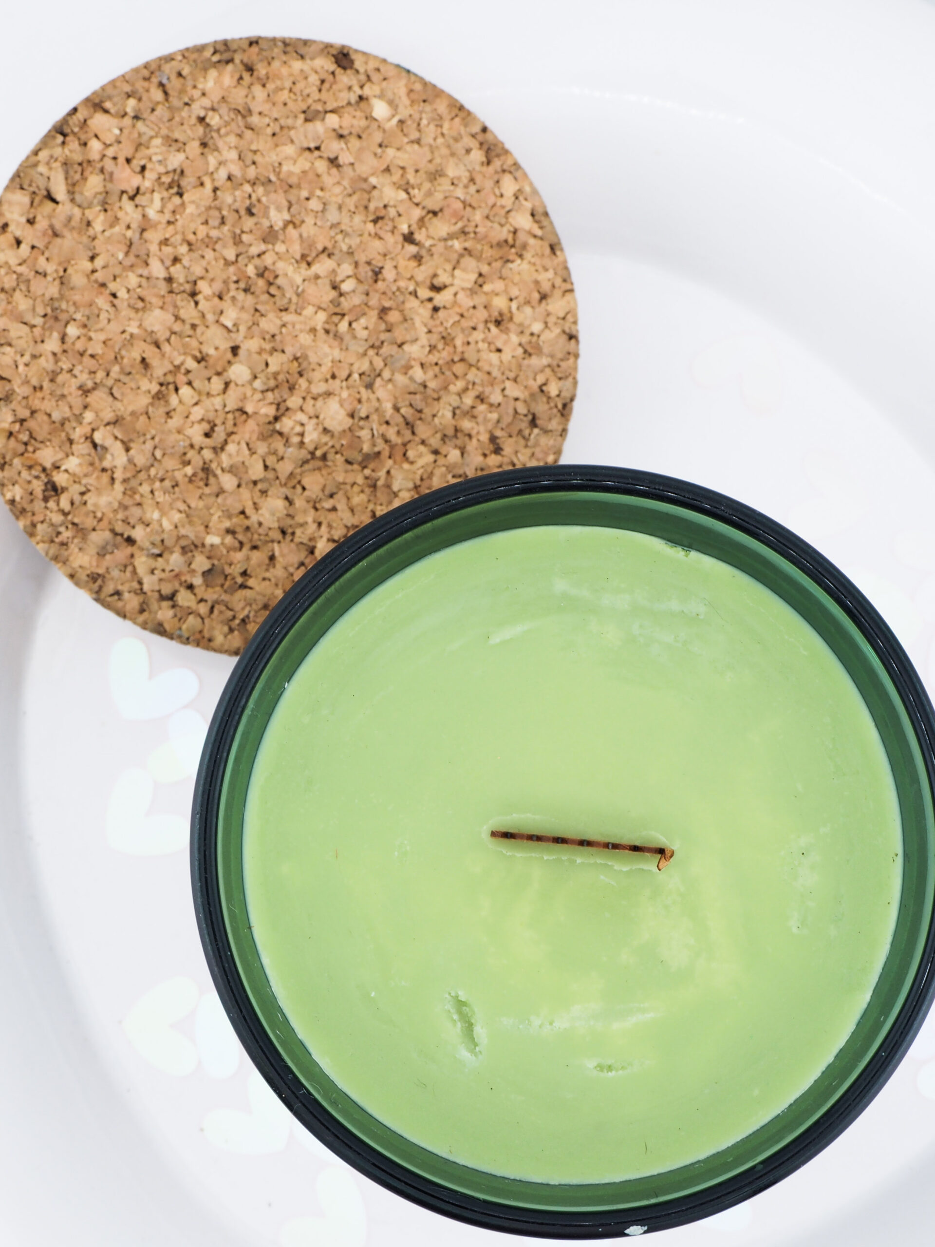 • Opakowanie: Szklany słój w kolorze morskiej zieleni z korkową pokrywką. Elegancki, ekologiczny i na tyle ładny, że po wypaleniu świecy będziesz szukać wymówek, by go nie wyrzucać. Dlatego świetnie nadaje się na pojemnik na drobiazgi, wazon lub skarbonkę na marzenia.