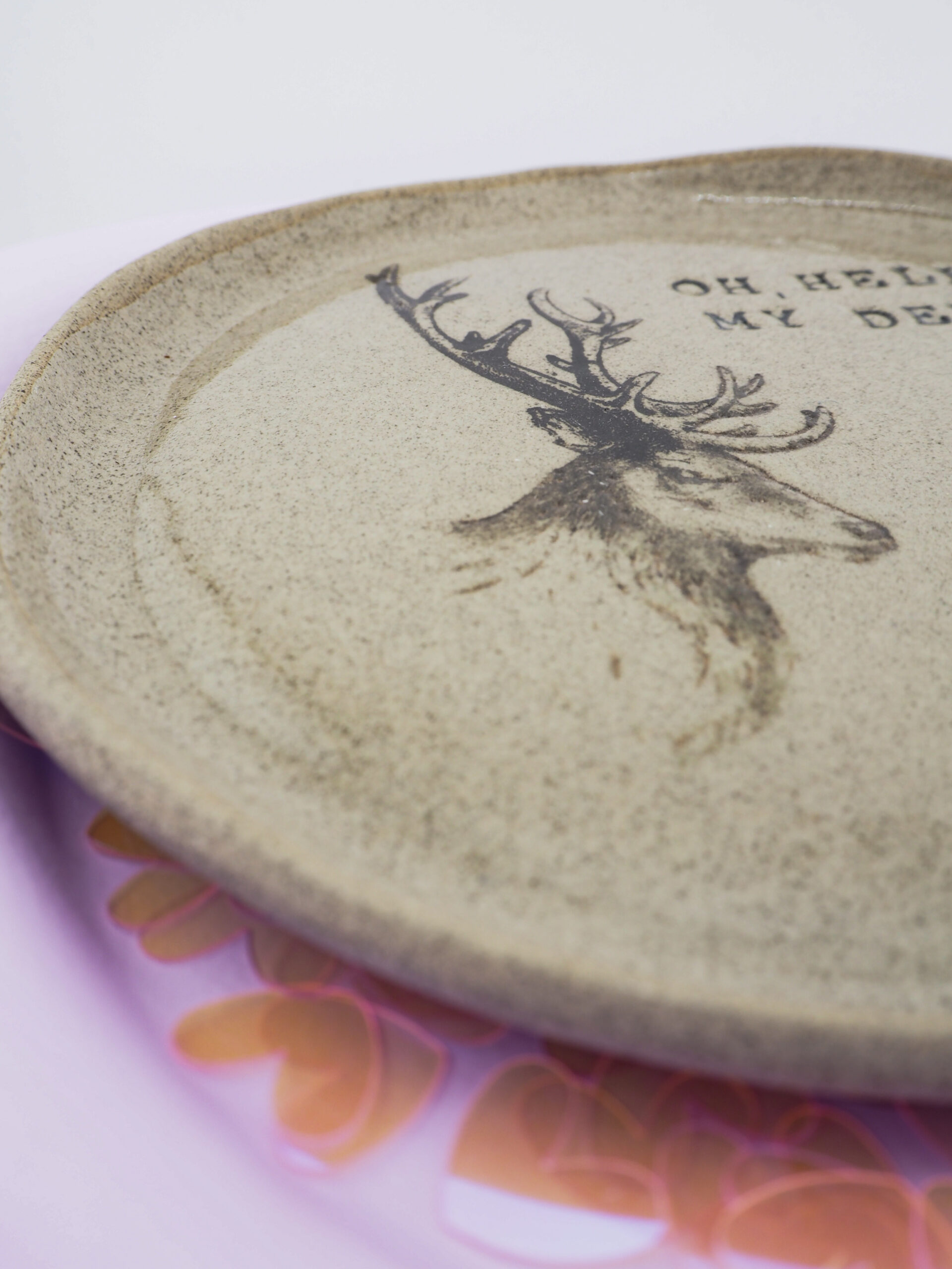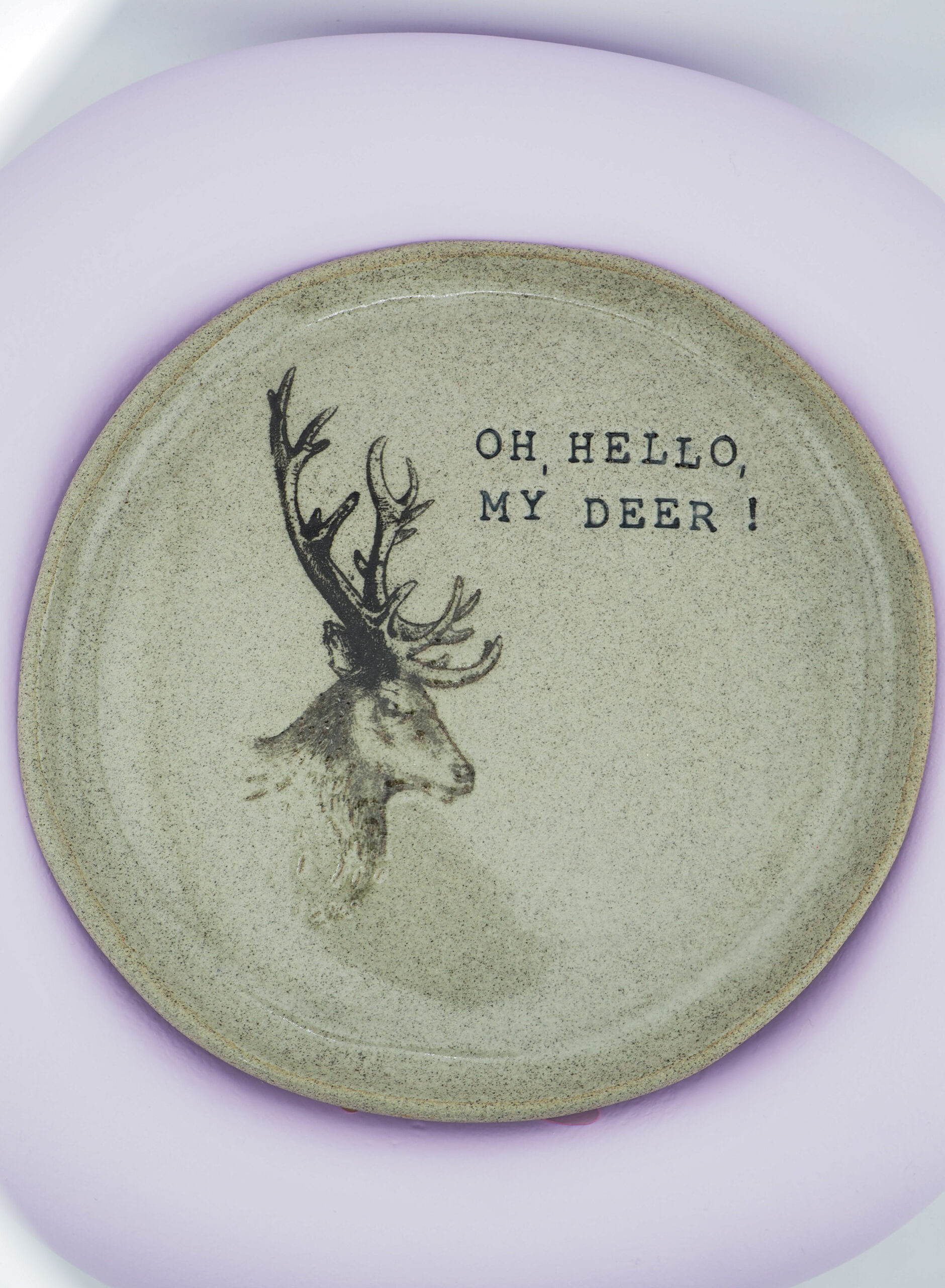 - „Oh, hello my deer” – z eleganckim jeleniem i bezbarwnym, błyszczącym szkliwem